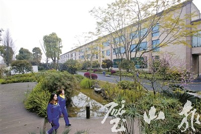 企業(yè)員工漫步在環(huán)境優(yōu)美的園區(qū)