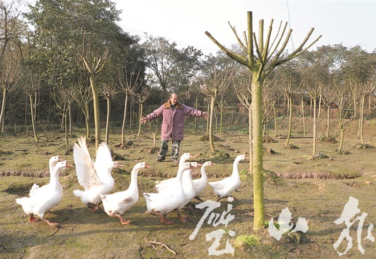 李光財正在放養鵝