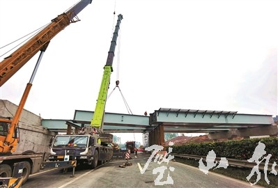 1月21日,在大路街道團(tuán)壩村,隨著重達(dá)800噸的鋼混組合梁成功吊裝到位,合璧津高速控制性工程——團(tuán)壩樞紐互通式立交主線橋架設(shè)成功。至此,合璧津高速璧山段主線架梁通道全部打通,為合璧津高速如期通車奠定了堅(jiān)實(shí)基礎(chǔ)。