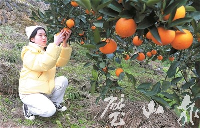 1月25日,陽光明媚,游客趁著好天氣來到八塘鎮青云村采摘血橙。一眼望去,可以看到一個個血橙像紅燈籠一樣掛滿了枝頭。據悉,該鎮柑橘類水果達30萬斤,主要有血橙、牛奶橙、椪柑等,目前,柑橘類水果均已成熟,采摘期將持續至2月底。