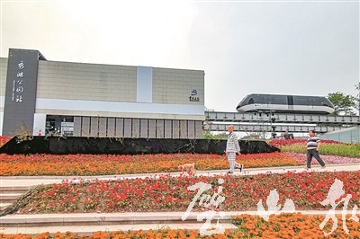 5月8日,市民漫步在云巴站臺下。當前,我區正依托比亞迪云巴軌道,打造一條“騎行+步行”的慢行系統,將連接高鐵、地鐵,形成一條城市綠廊,沿線將修建自行車停放點、廊亭、衛生間等便民工程,并安放休閑座椅供市民賞景休息,同時進行景觀打造,在重要節點布局健身區、滑板區、夜景燈飾等,穿行其間可欣賞美景、享受愜意時光。目前,云巴慢行系統一期車站站臺石材鋪裝完成,完成給水管網鋪設6公里,電力管網安裝6公里,苗木栽植2000棵。(記者 曾清龍 攝)