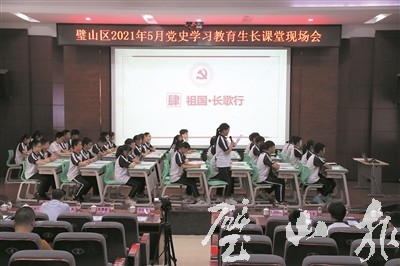 5月12日,我區黨史學習教育生長課堂現場會在璧山中學東林校區舉行,來自全區各中小學校的180余名教師通過現場觀摩,感受黨史課堂的豐富形式,更好將黨史學習教育融入課堂、走進校園。
