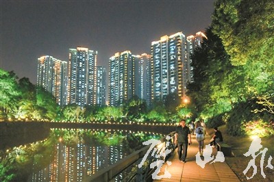 5月12日,璧南河在夜景燈飾的裝扮下分外迷人。近年來,我區大力推進城區燈飾工程建設,城區內的地標、公園、廣場、璧南河沿線等地相繼披上華麗衣裳,每當夜幕降臨,城市便展現出“夜晚一幅畫”的美麗景象。(記者 曾清龍 攝)