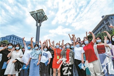 看著孩子輕松地踏進了考場大門,余學琴高舉的手機才慢慢放下。