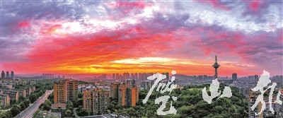 ①6月18日,攝影愛好者來到電視塔公園,被眼前的美景所吸引,立即記錄下這大美璧山的景象。(吳德全 攝)