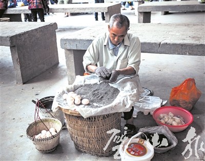 ⑤6月18日,鄉村市集,攝影者用鏡頭記錄下加工皮蛋的場景,展現了濃濃的煙火氣息。( 黃大慶 攝)