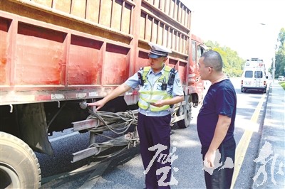 8月4日,璧青路上,交巡警正在檢查車輛安全情況。