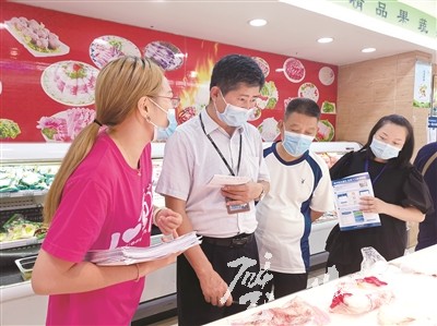 暗訪組重點(diǎn)檢查了商超工作人員口罩佩戴情況、出入口體溫測量配備、顧客體溫檢測、每日通風(fēng)、消殺記錄、店內(nèi)環(huán)境衛(wèi)生情況等。隨機(jī)抽查了冷鏈?zhǔn)称窂臉I(yè)人員核酸檢測報(bào)告,詢問查看了超市冷鏈?zhǔn)称贰⑶嗖恕⑷獾暗仁称芳拔镔Y價格,查看了工作人員新冠疫苗接種、健康碼、行程碼及超市銷售食品、物資供應(yīng)渠道、倉儲和質(zhì)量安全等情況。