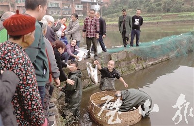 “我們從船形村過來的,自己買了幾條,還幫鄰居帶了十來條,一共買了三百多塊錢的魚。”船形村村民曾永清告訴記者,村民知道“清水魚”沒有投放飼料,肉質(zhì)好,又鮮又嫩,吃起來放心,大家都爭著買。
