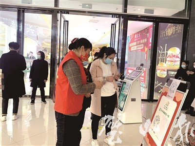 11月5日,俊豪中央大街門(mén)口,工作人員正在檢驗(yàn)市民的“兩碼”