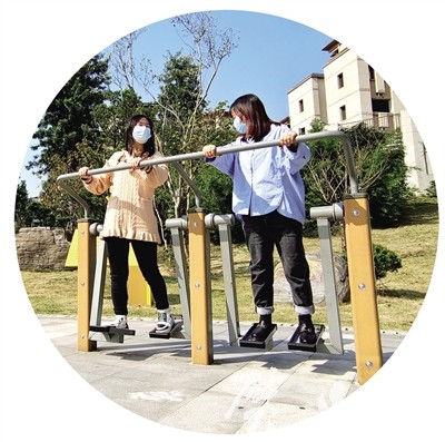在北門社區健身點,健身設備一應俱全,可滿足多個年齡段市民的鍛煉需求。