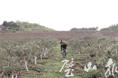 村民在菲油果種植基地除草(由大興鎮高橋村供圖)