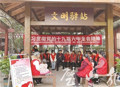 12月3日,由區新時代文明實踐指導中心、區志愿服務總隊主辦的“學習貫徹黨的十九屆六中全會精神”志愿宣講服務活動在風棲谷上界新時代文明實踐示范點開展?;顒友埆@得“光榮在黨50年”紀念章的老黨員宣講黨的十九屆六中全會精神,引導廣大市民積極參與志愿服務,弘揚志愿者精神。