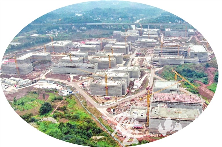 重慶中醫藥學院的建設只是服務業發展區管委會匯聚力量“造城”的一個縮影。目前,服務業發展區管委會在建項目19個,總投資約50.13億元;正在開展前期工作的擬建項目21個,總投資約76.37億元。在市級重點項目建設方面,景山人才公寓項目1號樓完成12層砼結構,2號樓完成16層砼結構,3、4號樓完成主體砼結構封頂,商業樓完成2層砼結構,完成主體結構工程的85%;縱二路正在進行水穩層及人行道鋪設、路燈基礎澆筑等工作;綠島麗景一期完成1、2、9號樓至27層鋼筋砼結構和9層砌體結構,4、5、6號樓至17層鋼筋砼結構,8號樓至15層鋼筋砼結構,3號樓砌體結構全部完成;綠島麗景二期旋挖樁累計完成總工程量的22%,錨桿累計完成總工程量的10%,土石開挖累計完成總工程量的34%;綠島麗景三期完成1號樓標準層一層、2號樓基礎和車庫基礎。