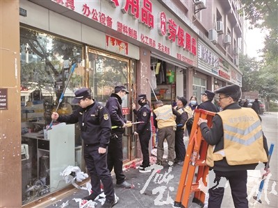 整治過程中,執法人員還督促沿街商鋪落實“門前三包”責任制,做好門前衛生清理,保持整潔有序的門面經營環境,自覺遵守城市管理規定,營造良好的城市環境。