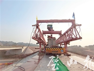 1月19日,隨著架梁機緩緩移動,最后一片長 30 米、寬1.75米、重80噸的混凝土預(yù)制T梁精準落位,由中鐵二十一局承建的合璧津高速龍鳳樞紐互通立交上跨渝蓉高速中橋全面貫通,距離高速建成通車又邁進了一大步。