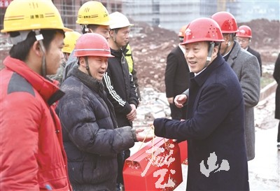 “新春快樂,你們辛苦了!你們堅守一線的身影令人感動,向你們致敬!”秦文敏說,大年初一,正是萬家團聚歡度新春佳節的美好時刻,建設者們卻遠離家鄉、遠離親人,堅守崗位,奮戰在項目建設的第一線,為璧山經濟社會發展作出了巨大的貢獻。在此,我謹代表區委、區政府向你們及你們的家人表示崇高的敬意和親切的問候,祝愿你們新春愉快,萬事如意。