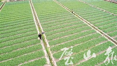 ? 3月6日,八塘鎮涼水村,農戶肩挑蔬菜準備裝車。