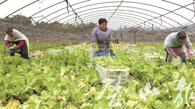 ? 3月4日,七塘鎮將軍村,農戶在大棚內采收蔬菜。
