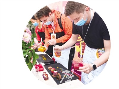 活動中,外國友人們在甜品師的帶領下,以璧山櫻桃制作的各種餡料、甜點等,圍繞“璧山”和“櫻桃”兩個主題創制和品鑒“云霧山櫻桃甜品秀”。只見大家信心滿滿地攪拌奶油、填充果醬、擺盤作畫等,濃郁的櫻桃果香、奶油醇香縈繞在鼻尖,不一會兒,一幅幅色、香、味俱全的美食圖景躍然眼前。