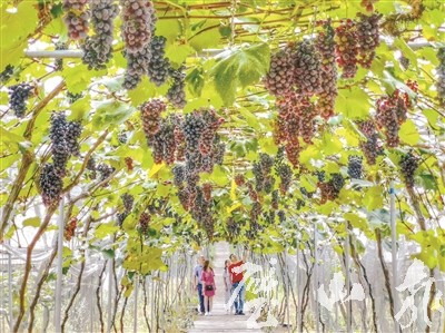 游客在大興鎮(zhèn)葡萄園采摘葡萄