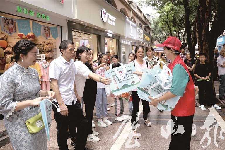 在名豪步行街,志愿者開展創(chuàng)文宣傳。