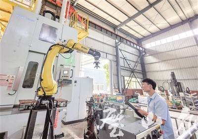 7月25日,在璧山高新區規上企業江匯機械生產車間內,工人正在生產線上忙碌。據悉,全區現有規上工業企業359家,今年上半年,全區規上工業產值完成449.5億元,同比增長15.5%,規上工業增加值139億元,同比增長10%。