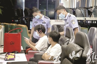 工作人員在網(wǎng)吧檢查