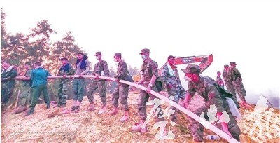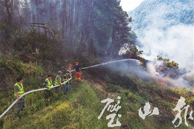 8月25日,八塘鎮陽龍后山,救援人員組成一道人墻奮戰在火情一線。
