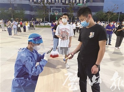 晚上9點,在現場工作人員的統籌調度下,該點位上的核酸采樣工作已接近尾聲。工人們能明顯感覺到此次核酸采樣排隊等候時間縮短了,信息錄入也更方便、更高效了。