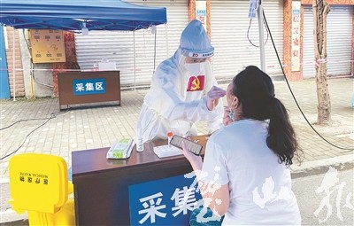 遇見年長(zhǎng)的老人或者不熟悉手機(jī)操作的居民,江漫漫都會(huì)耐心解釋、幫忙指導(dǎo)。遇到有居民不理解、不配合采樣工作,“這個(gè)時(shí)候就需要我們更耐心,多提醒居民‘頭上仰一點(diǎn),再堅(jiān)持幾秒鐘’。”江漫漫說。
