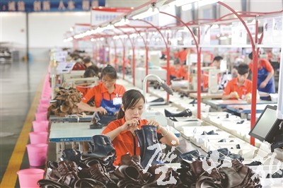 圖一:2012年9月12日,璧山一鞋廠內,工人正忙碌趕工。