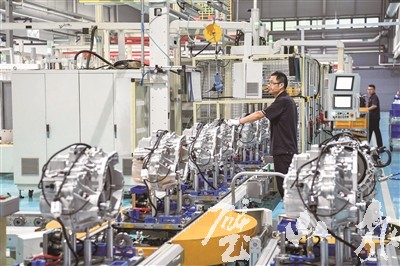 青山工業(yè)有限責(zé)任公司DCT變速箱生產(chǎn)線,工人開足馬力加緊生產(chǎn)。 (資料圖片)