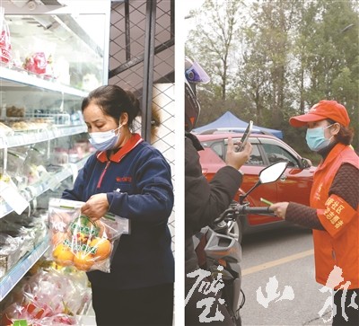 社區志愿者在交通卡點值守 超市工作人員在清點物品