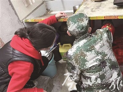 趕到陳宗鑫家后,鄒盛祿和宋平敏發現水管爆裂的位置在廚房,因沒有安裝地漏,廚房和陽臺的水已經淹到腳踝。兩人立即關閉閘閥、排出家中積水……經過一個多小時的排污處理,老人家中污水才全部排出。來不及緩口氣,宋平敏又接到了街道黨工委的電話,穿著那雙已浸濕的鞋子又奔赴下一個防疫“戰場”。