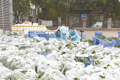 國隆集團總經理萬華介紹,復市后,國隆集團在嚴格落實疫情防控措施的前提下,積極在區內聯系客商、基地采購蔬菜。首日調運蓮白、瓢兒白、茄子、茼蒿等新鮮蔬菜共計20噸供應市場。
