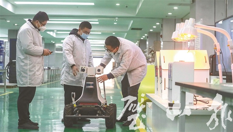 1月28日,璧山高新區,重慶高新技術產業研究院的科技人員在調試氫燃料無人機、機器人等新一代智能設備。春節后上班第一天,該研究院的科技人員積極投入研發工作,助力科技創新。