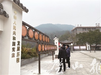 原來,這是青杠街道于近期打造的“家門口”的法治廣場。廣場除了休閑座椅等設施,還設有中國憲法發展史長廊、“鼓法青山”和“六尺巷”典故等景觀小品,在清風綠草間,將“奉公守法”“科學立法”“依法治國”等法治文化理念有機融合,使群眾在休閑娛樂時,近距離領略法治文化,感受法治精神。