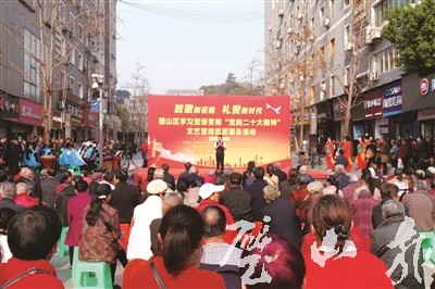 為深入學習宣傳貫徹黨的二十大精神,不斷增強人民群眾奮進新征程、建功新時代的精神力量,3月15日,由區委宣傳部、區文聯主辦,區文化演藝協會、區民樂藝術協會、區管弦樂協會承辦的“放歌新征程·禮贊新時代”文藝界學習宣傳貫徹黨的二十大精神活動在虹橋廣場舉行。民樂合奏、快板、小品等各類精彩的表演輪番上陣,市民在歡樂的氛圍中一邊欣賞表演,一邊感受黨的二十大精神內涵。
