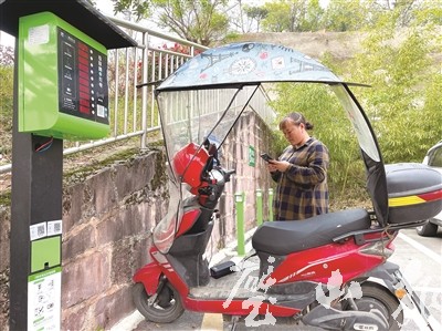 “現在電瓶車充電很便宜,充電3小時才4角錢,能跑30多公里,我們當然選擇更安全綠色的充電樁充電。”4月3日,青杠街道青山社區居民胡永梅正在新安裝的充電樁旁停車、掃碼、付費,簡單的幾步操作便為電瓶車充上了電,這得益于青杠街道用好用活充電樁,讓居民樂享平價電。