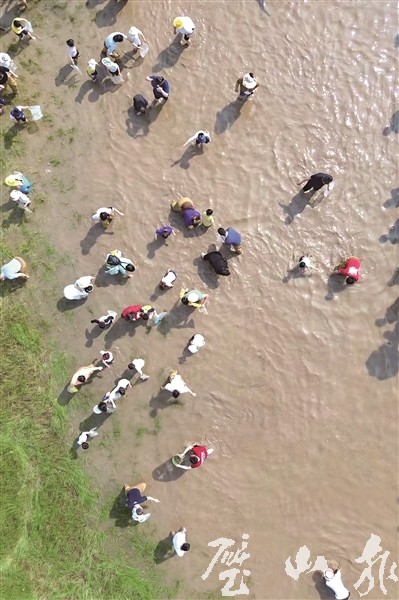 ▲ 5月1日,正興鎮潤天河農莊,游客體驗摸魚項目。
