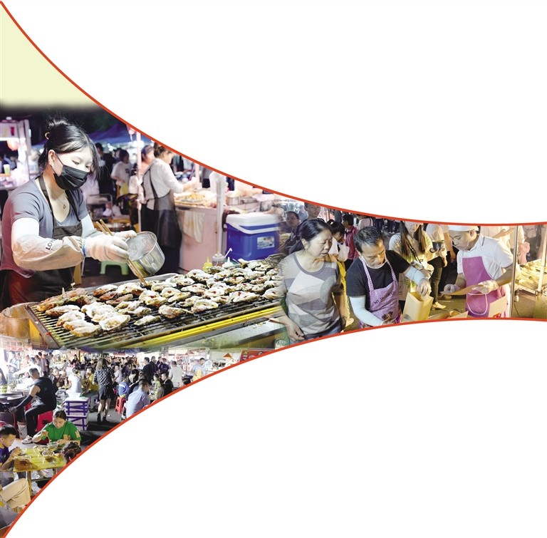 夜幕降臨,夜市上人頭攢動,“煙火氣”十足。