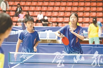 5月12日至14日,由區體育局、區教委主辦,區乒乓球協會等承辦的全區中小學生乒乓球錦標賽在區體育中心舉行。此次比賽分小學A組、小學B組、初中組、高中組4個組別,設男子單打、女子單打、男子雙打、女子雙打、混合雙打5個項目。經過3天的激烈角逐,共評選各類獎項32個。(首席記者 謝捷 攝)