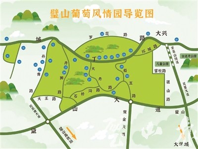 為助力本次活動,主辦方特別發放10萬元葡萄節消費券,滿100元減40元,游客可在指定商家使用消費,讓大家在活動期間盡享葡萄盛宴。此外,為方便采摘,主辦方特地整理了一份璧山區葡萄風情園導覽圖,市民根據路線即可到達。