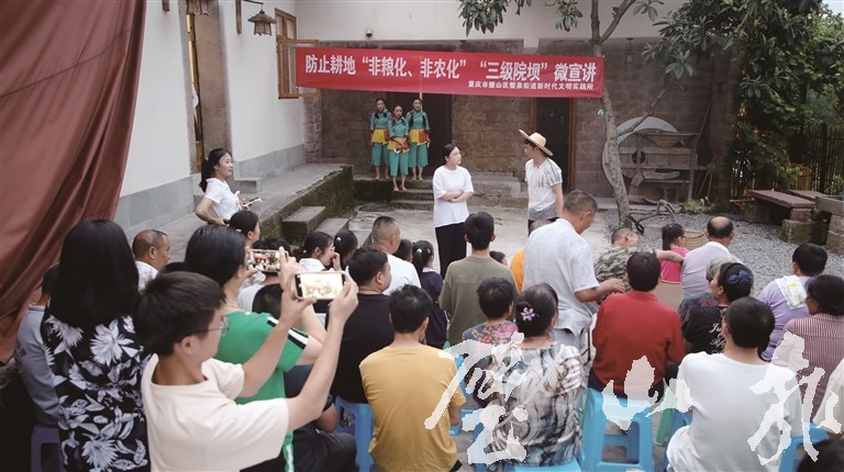 璧山報訊(記者 楊文廣 文/圖)7月13日,璧泉街道在鷹嘴社區吾家小院開展防止耕地“非糧化、非農化”微宣講活動。