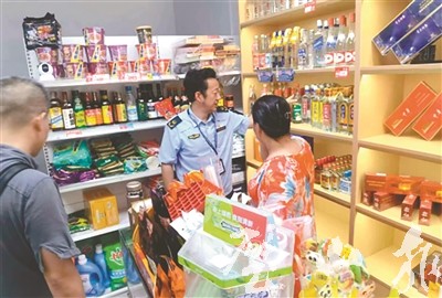 執(zhí)法人員在煙酒店排查侵權(quán)商品