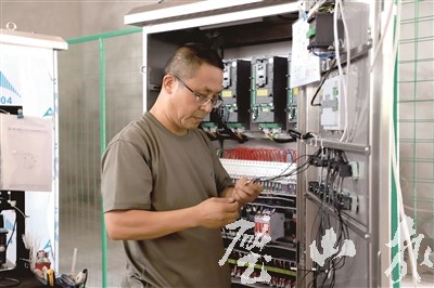8月17日,走進重慶成峰水務工程有限公司控制柜區,白昌勇正認真對照圖紙,將各種元器件安裝到相應的位置。