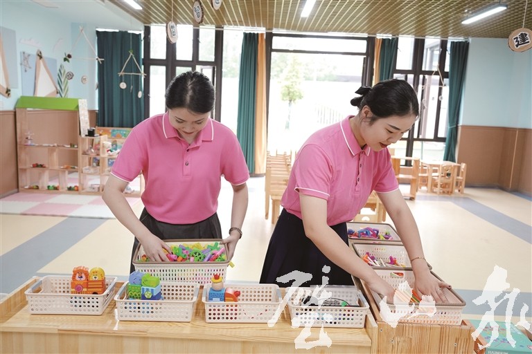 城關第二幼兒園朗詩校區教師在準備學習用具