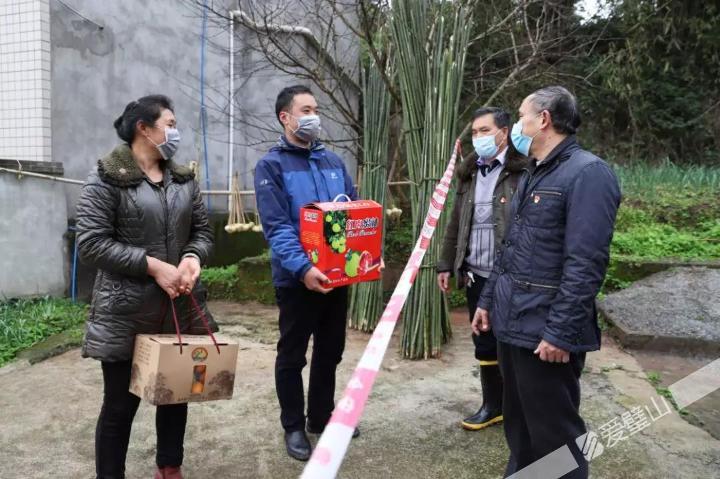 福祿鎮(zhèn)非公組織聯(lián)合黨支部書記蔡金東(右一)為福祿鎮(zhèn)湖北返鄉(xiāng)居家隔離群眾免費送上血橙、柚子等水果。