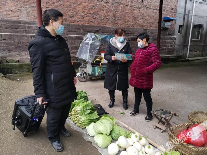 健龍鎮(zhèn)龍江社區(qū)黨委組織“兩委”成員、社區(qū)黨員等組成聯(lián)合小隊,通過“行走的廣播”和“面對面”方式,增加農(nóng)貿(mào)市場宣傳管控效果。